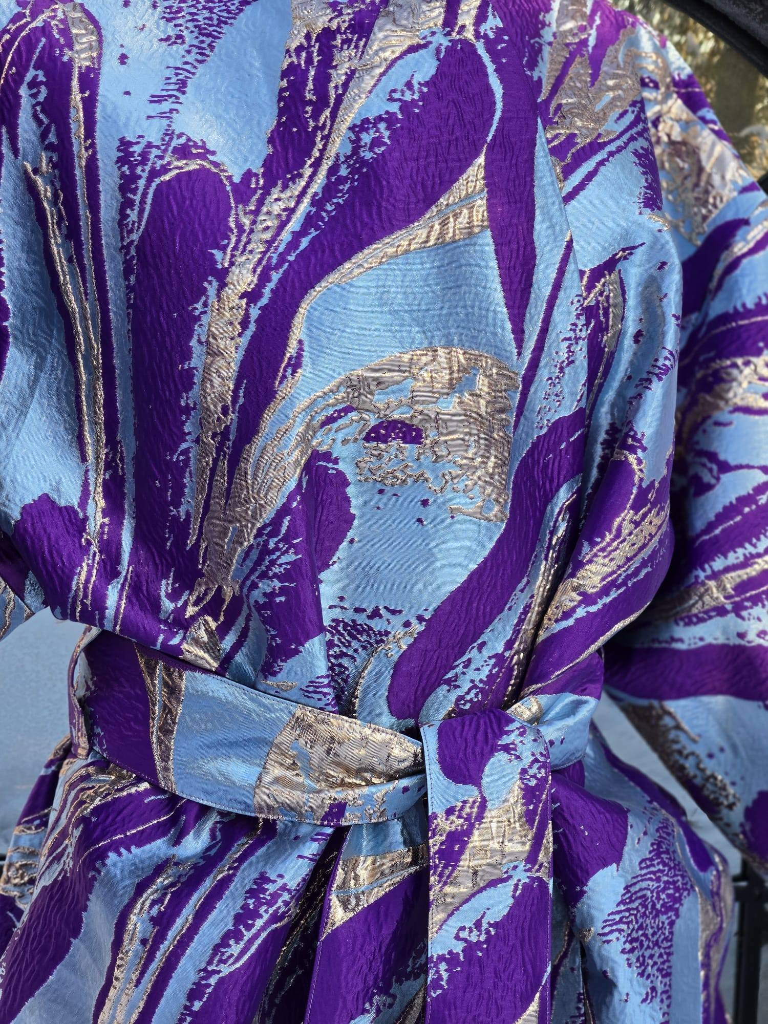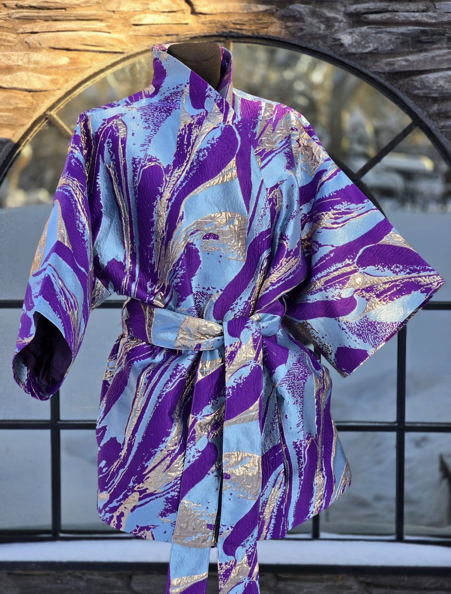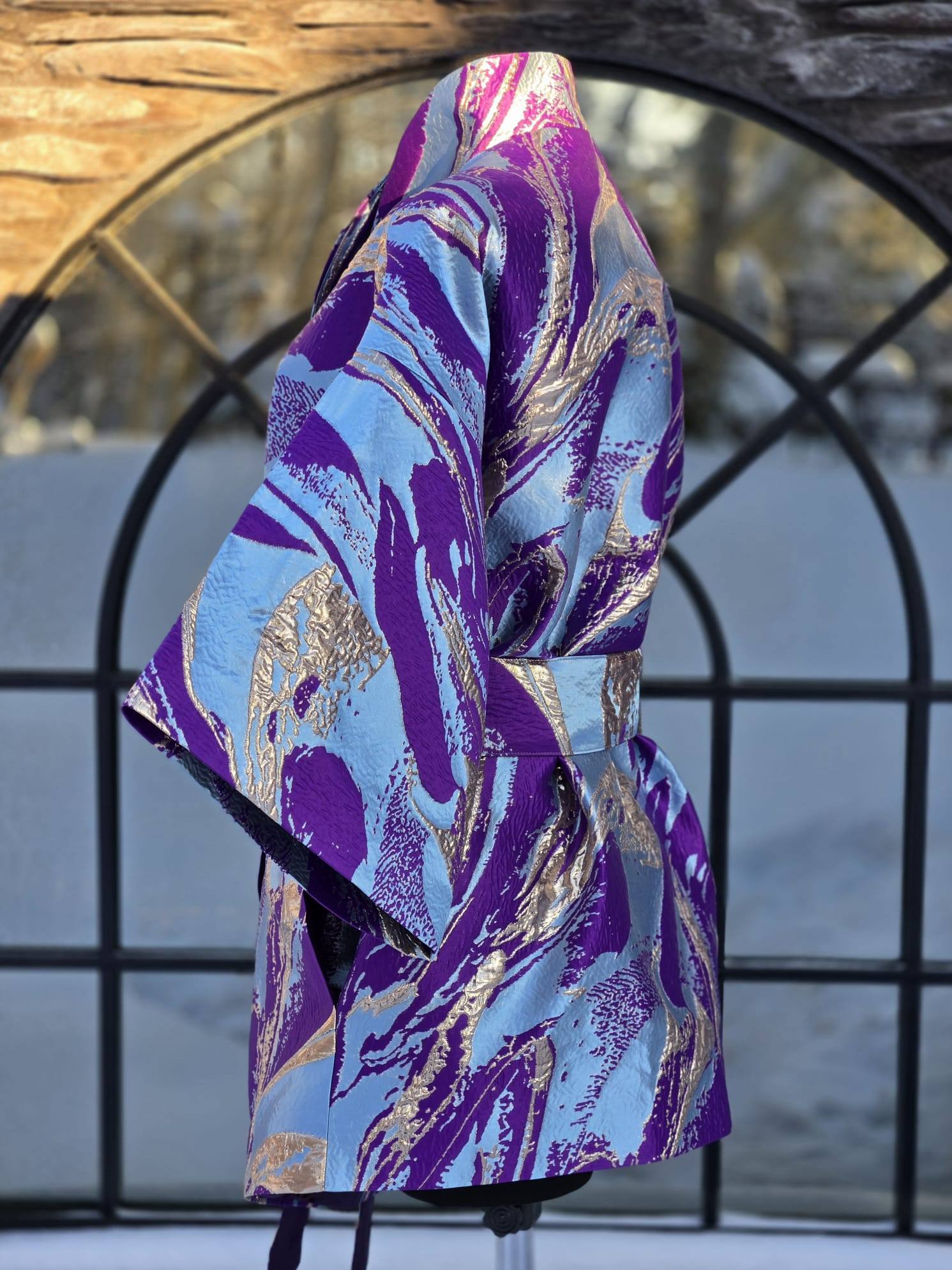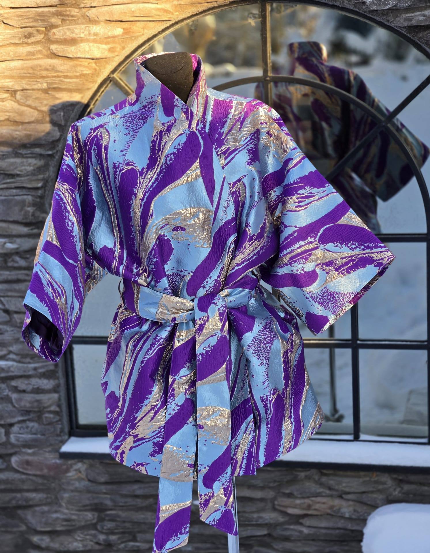 Nende KIMONODE sisemust katab tumelilla viskoosvooder (vis+pes segu). Põhikangaks on kõrgkvaliteetne brokaatkangas. Kanga valmistamiseks on kasutatud metallniite mis lisavad kangale sära ja kolmemõõtmelisuse.