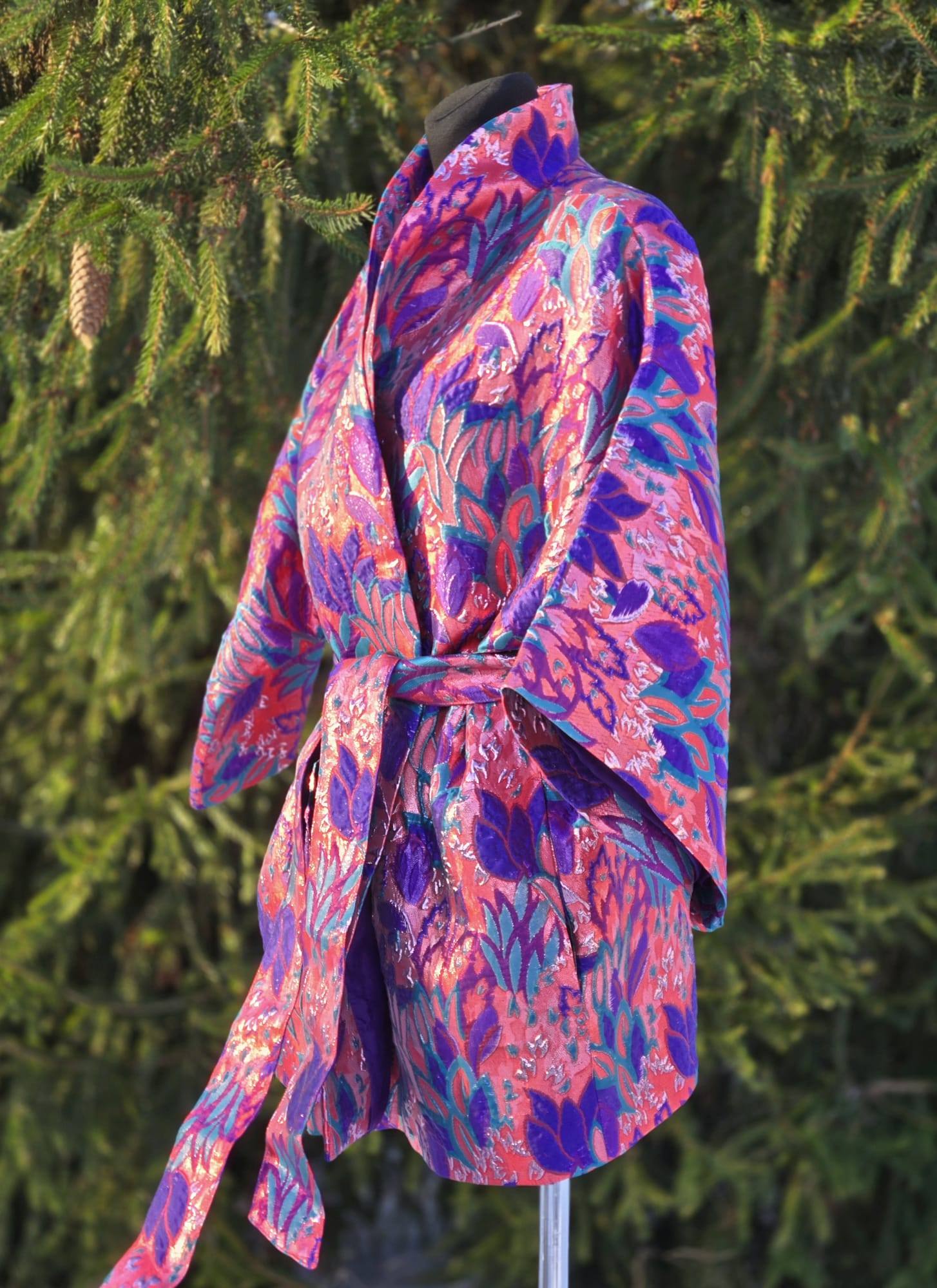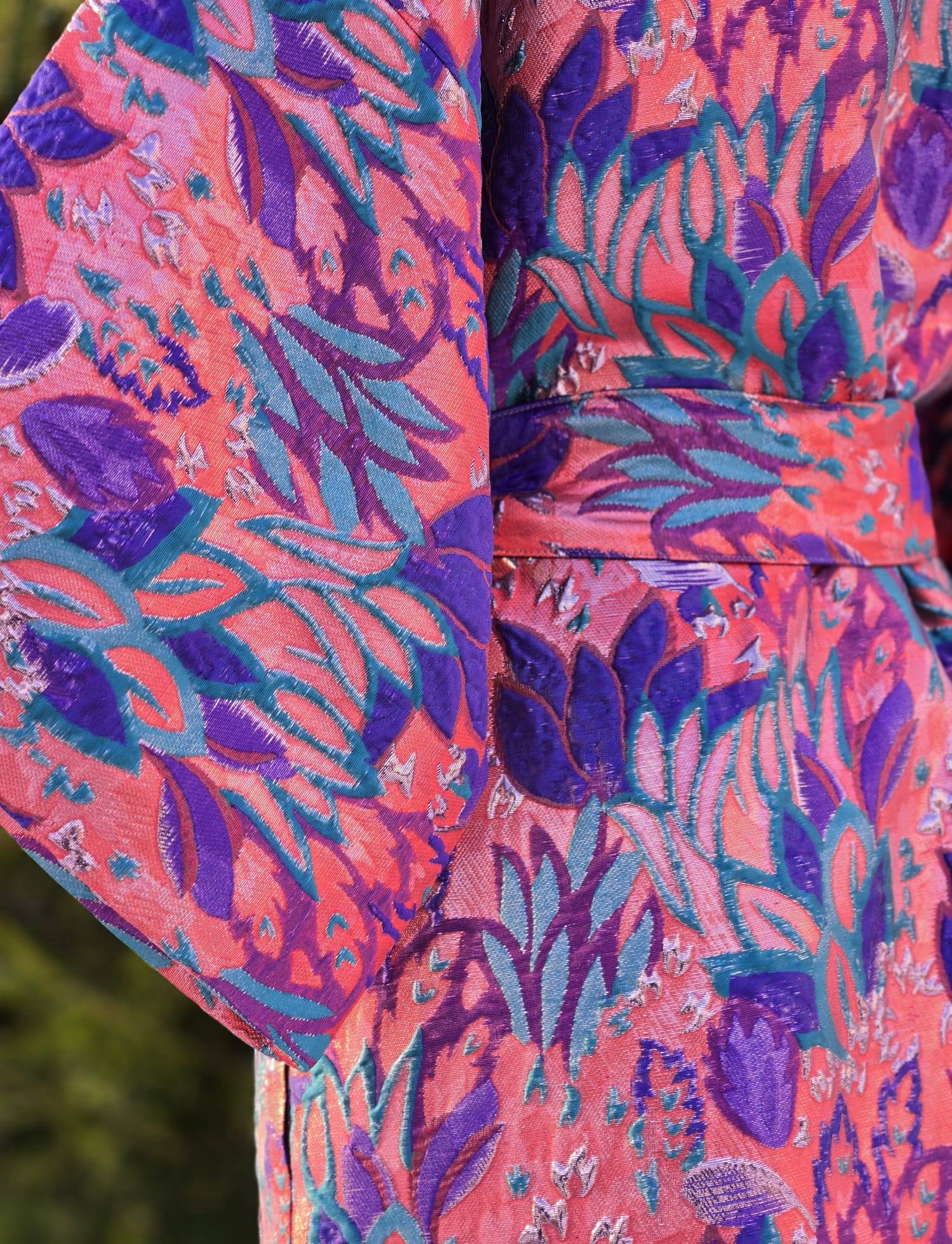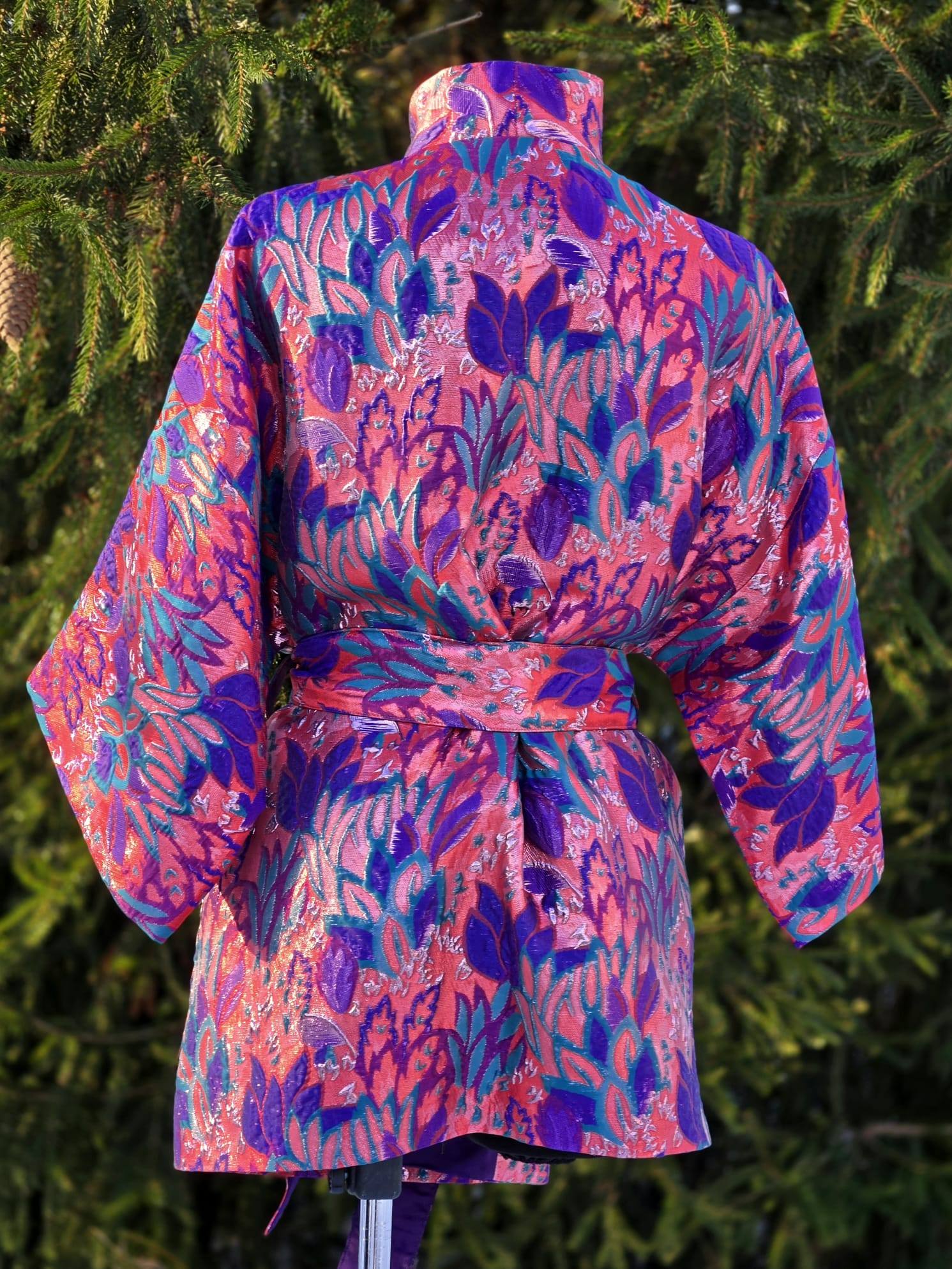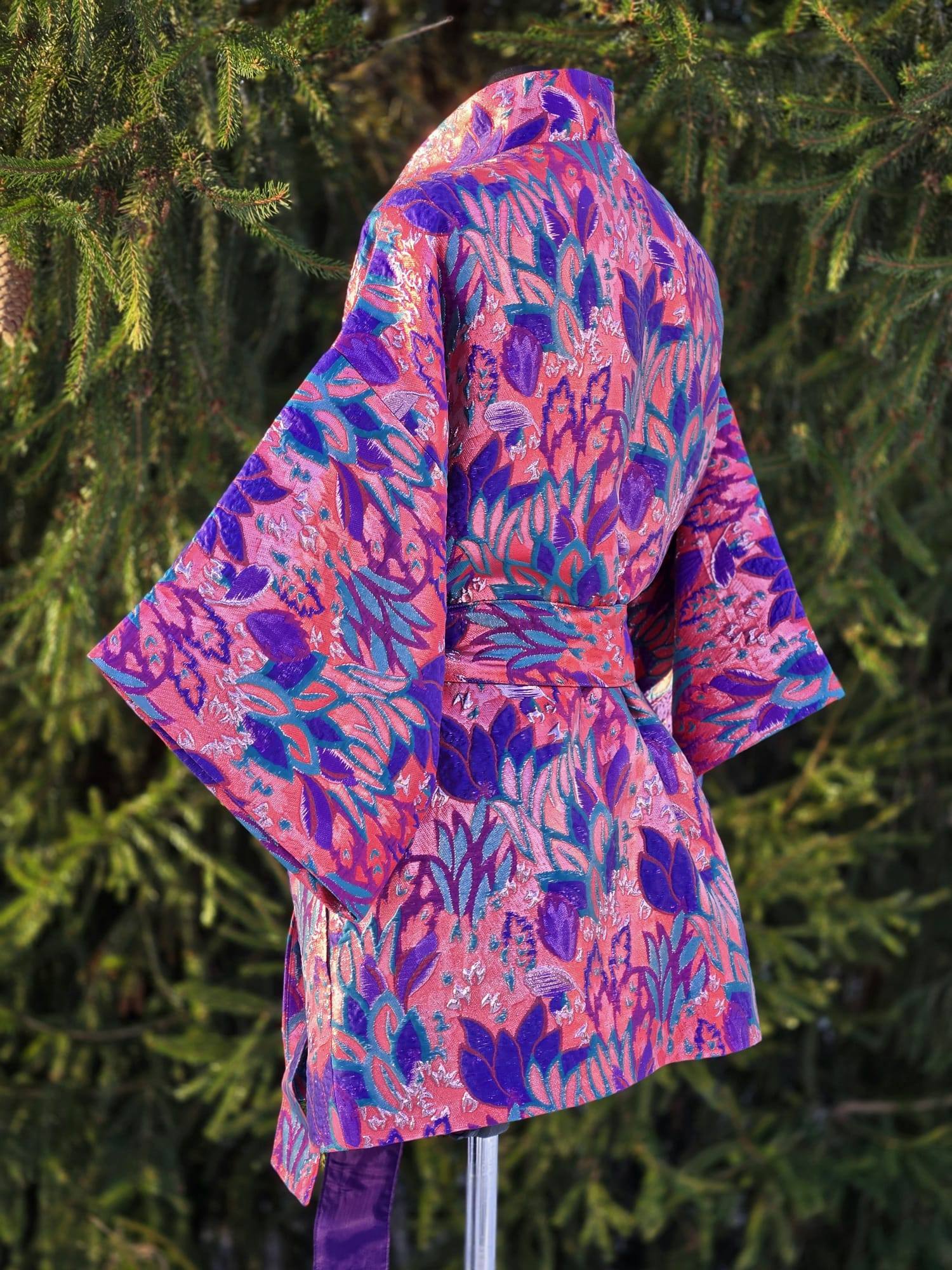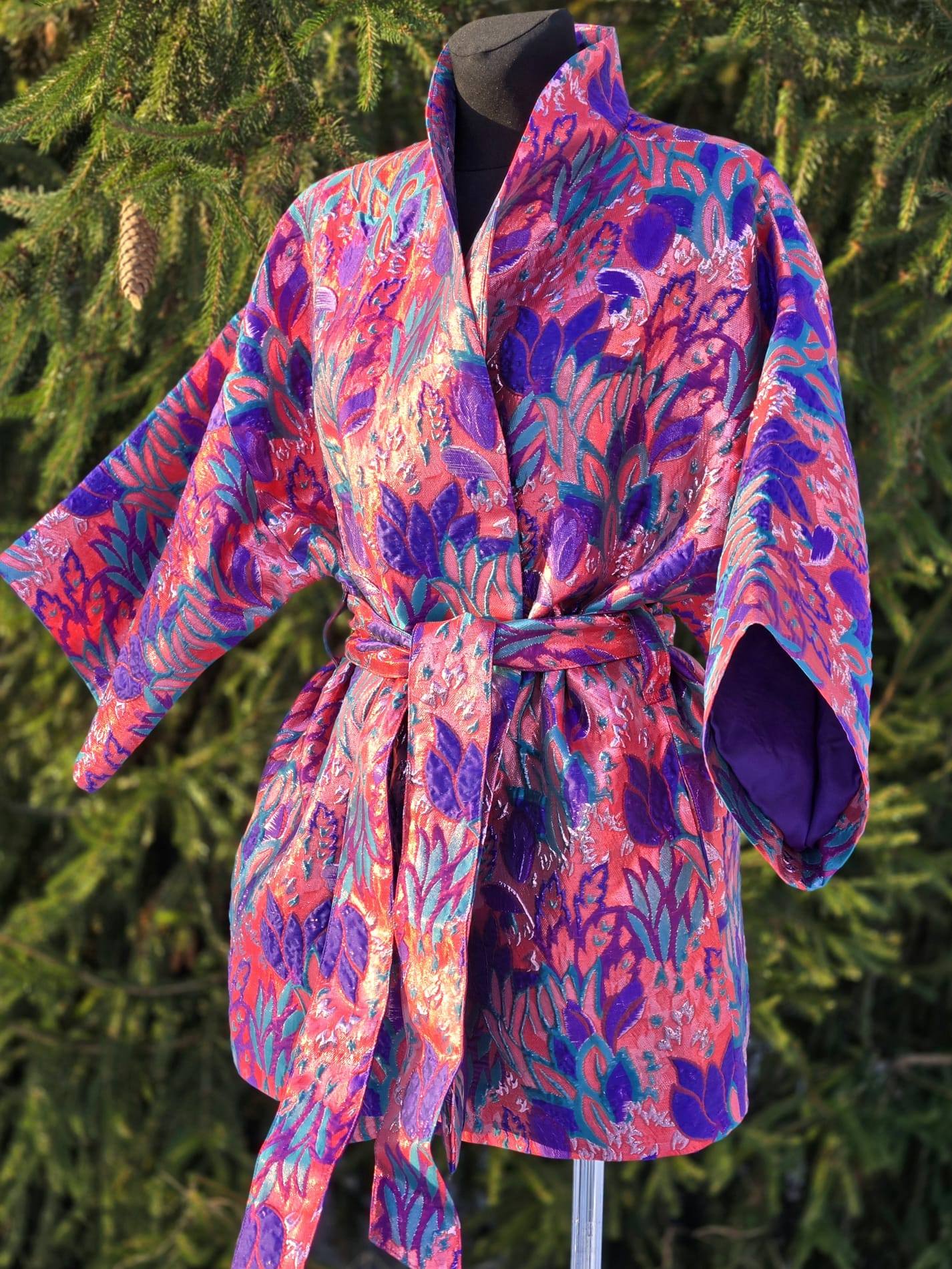 Nende KIMONODE sisemust katab lilla viskoosvooder (vis+pes segu). Põhikangaks on kõrgkvaliteetne brokaatkangas. Kanga valmistamiseks on kasutatud metallniite mis lisavad kangale sära ja kolmemõõtmelisuse.